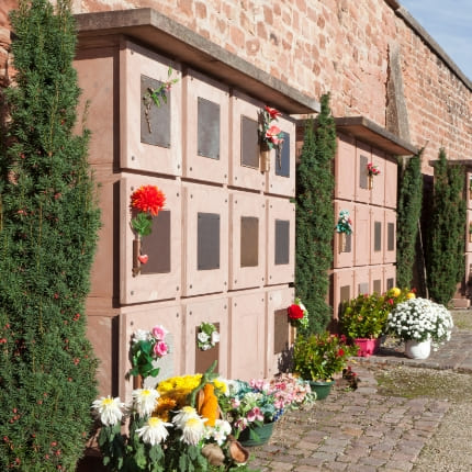 Aménagement de jardins du souvenir et d’espaces cinéraires avec columbariums individuels ou collectifs et cavurnes, puits de dispersion